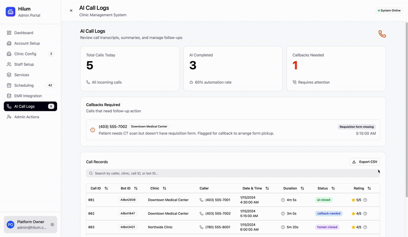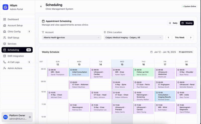 Turn Hilum Admin’s activity into actionable outcomes. Track live performance, conversion to bookings, requisition throughput, and the impact on staff productivity by clinic, modality, and time window.