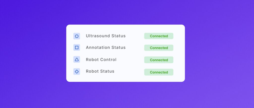 Ultrasound and robot statuses are always illuminated, giving you real-time clarity so you can make informed decisions without second-guessing.